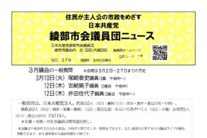議員団ニュース(2026/3/5)を掲載しましたNew!!