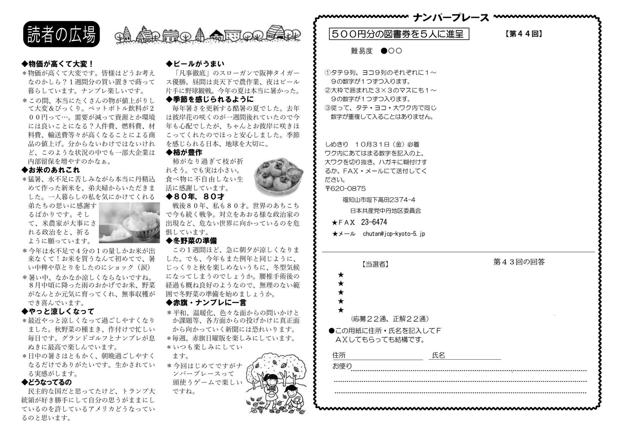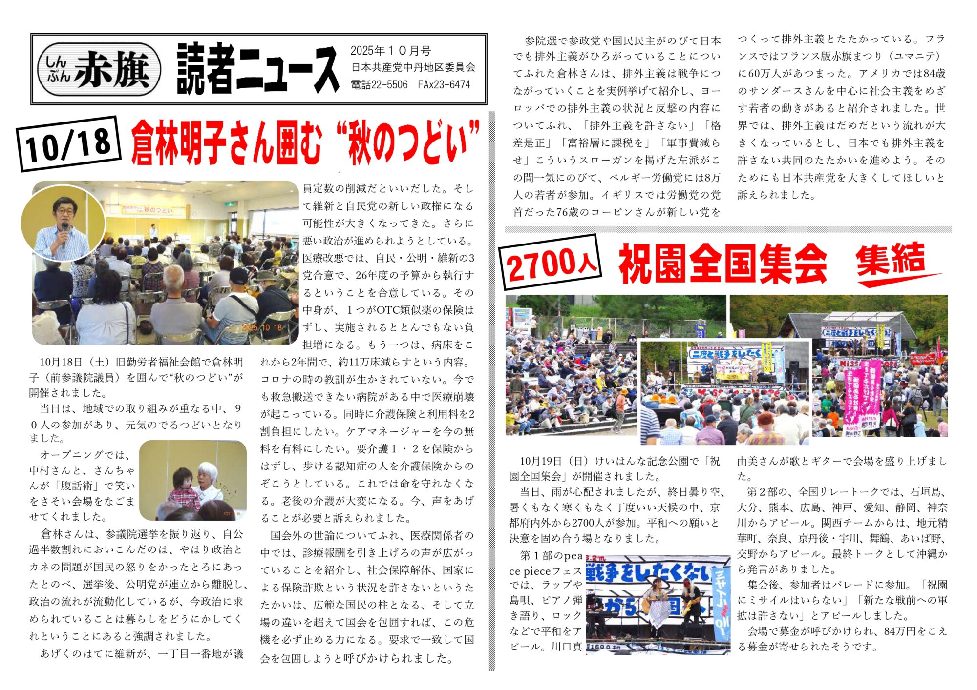 「赤旗」読者ニュース 2025年10月号 2025-10-30 最終更新日時 : 2025-10-30 master 「読者ニュース」(赤旗日曜版10/26号に折り込み)掲載しました。 FacebookXBlueskyHatenaCopy