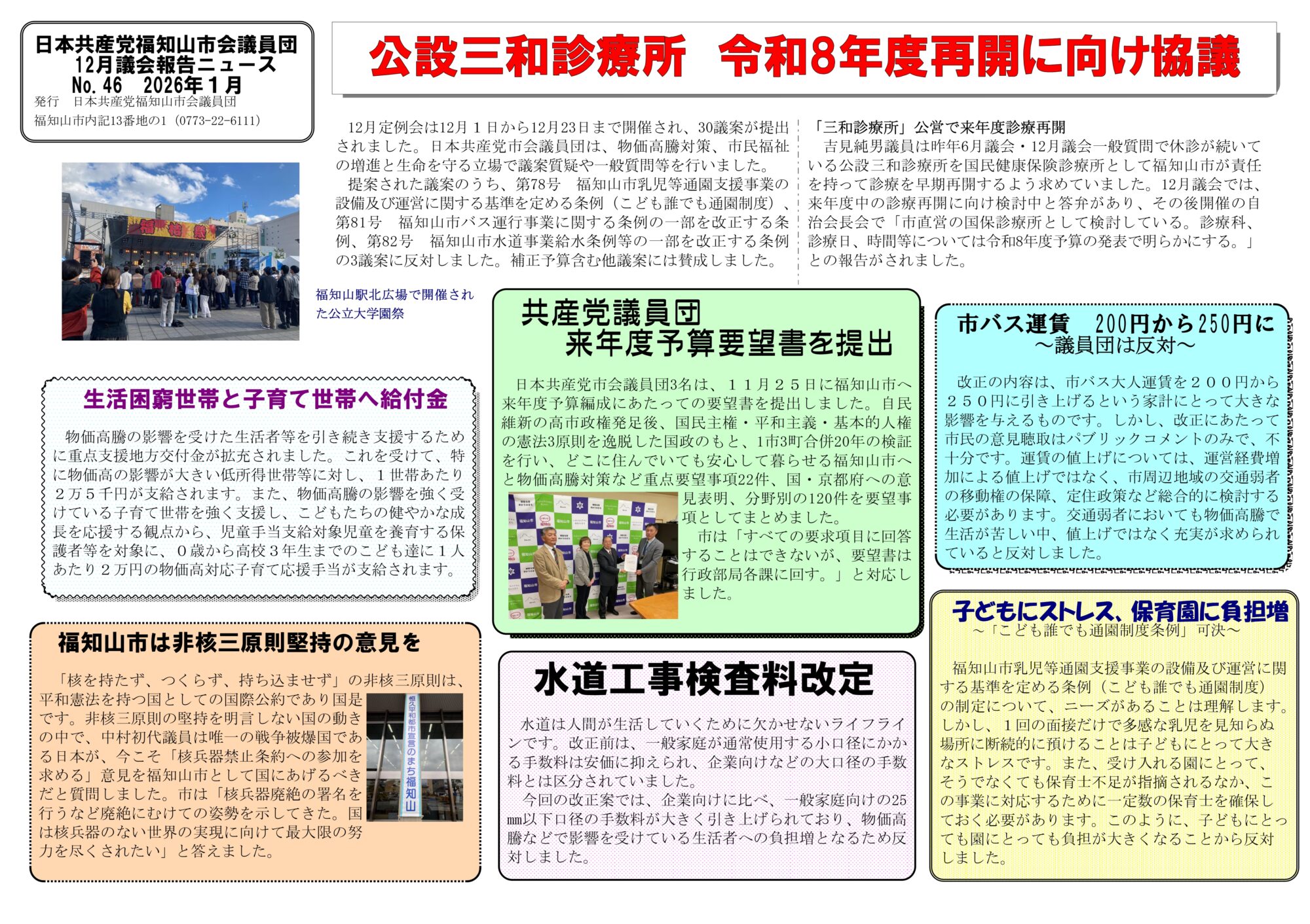 日本共産党福知山市会議員団議会報告ニュース No.46 2026年1月